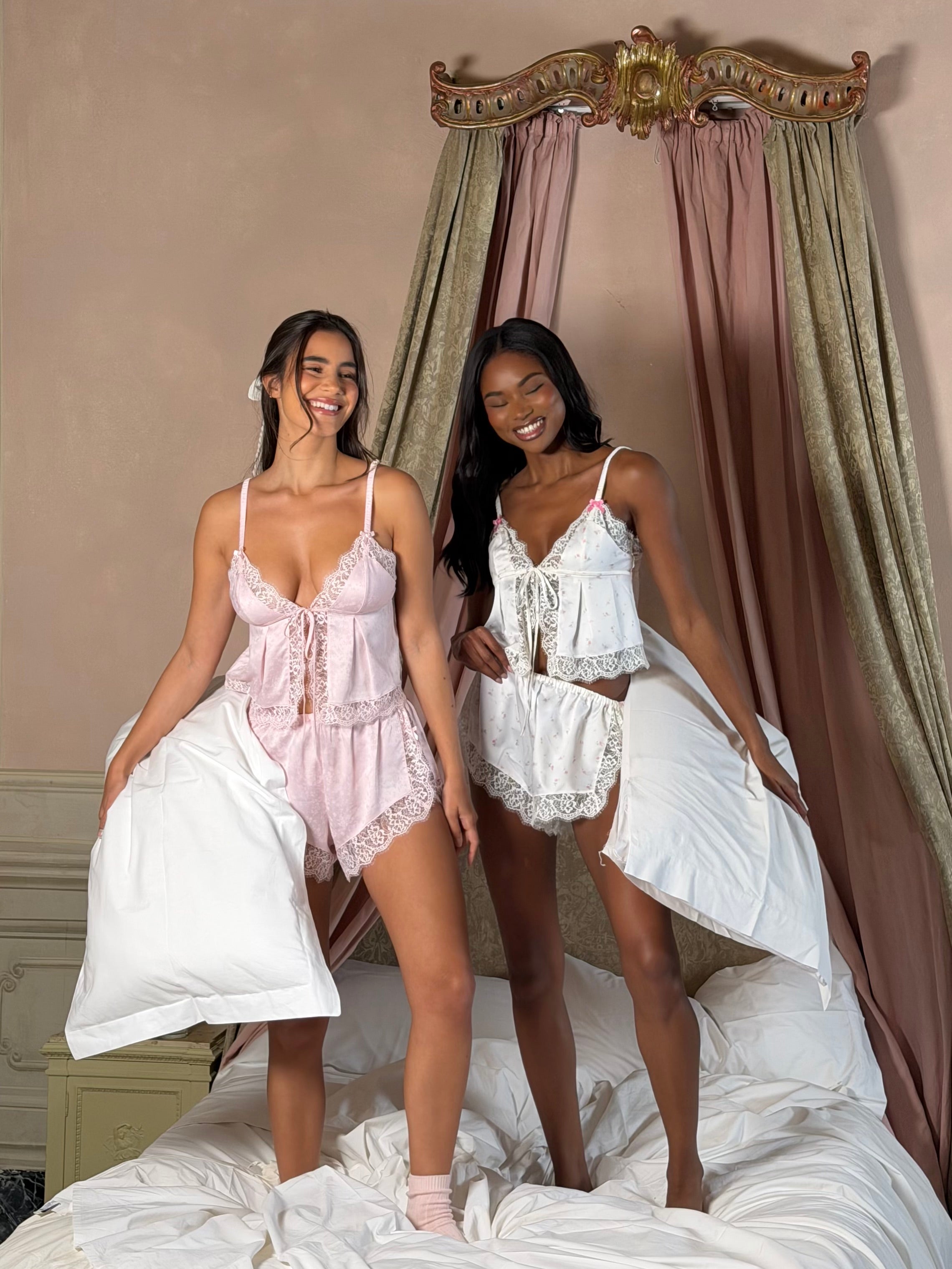 Ta en titt bakom kulisserna på denna klassiska kollektion inspirerad av pyjamaspartyn. Alla hjärtans dag har aldrig varit så söt.
