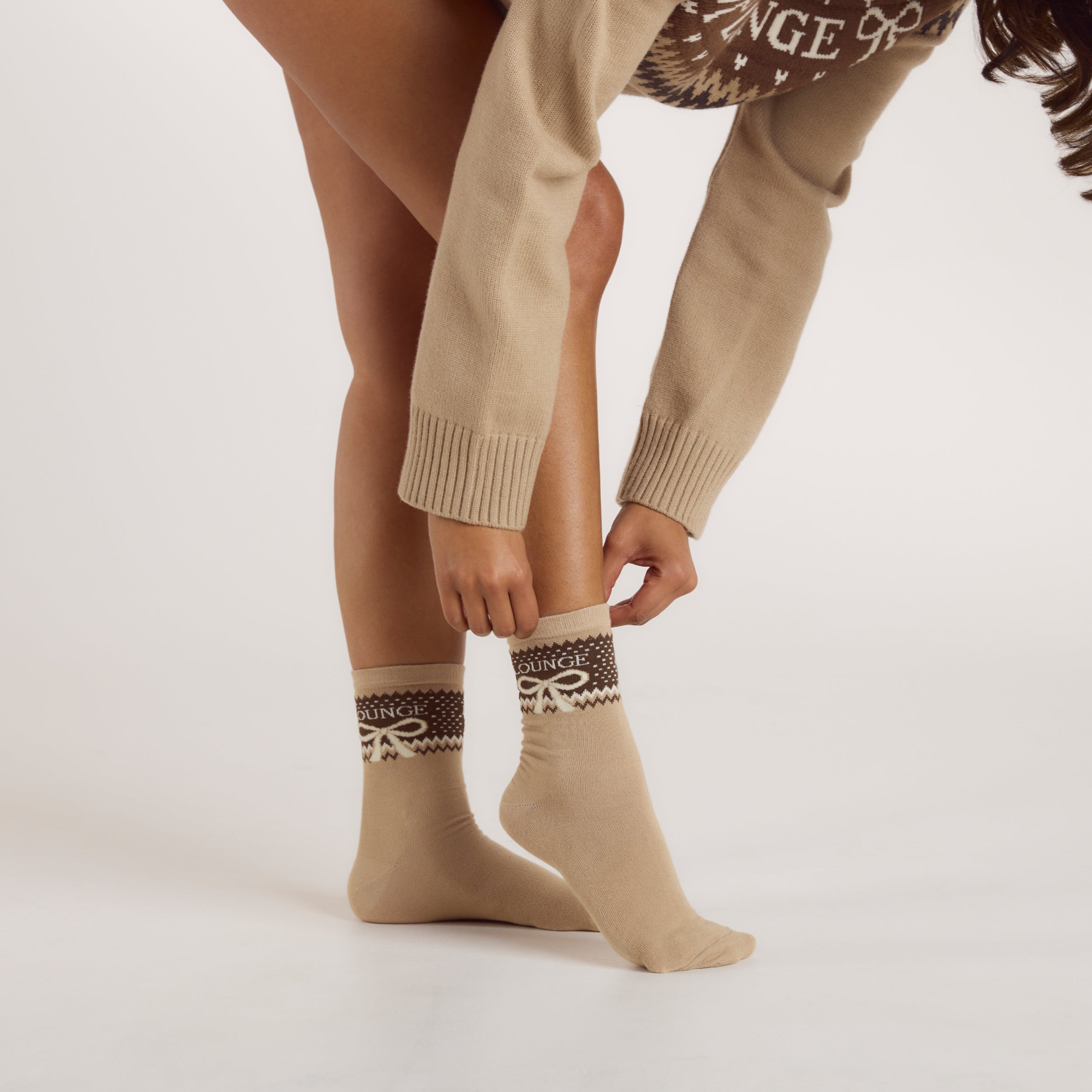 Fairisle Strumpor - Brun/Krämfärgad