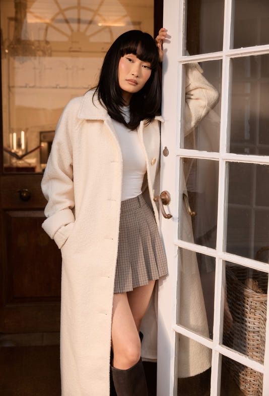 Contour mode ger plats för high fashion med introduktionen av Shearling Coat. Detta vackert bärbara plagg visar prov på genomtänkt hantverk, med subtila varumärken och accenter som är omisskännligt Lounge.