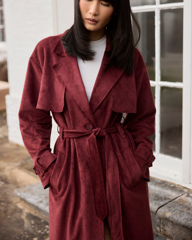 Contour mode ger plats för high fashion med introduktionen av Suede Trench Coat. Detta vackert bärbara plagg visar på ett mästerligt och genomtänkt hantverk, med subtila märken och accenter som är omisskännligt Lounge.
